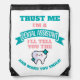 DENTAL ASSISTANT Funny Tell You The Truth Drawstring Bag with CUSTOMIZABLE TEXT. Designed to show your appreciation to your favorite Dental Assistant during Dental Assistant Appreciation Week. The wording reads TRUST ME I'M A DENTAL ASSISTANT. I'LL TELL YOU THE TOOTH and includes a cartoon kawaii tooth. The CUSTOMIZABLE text reads AND MAKE YOU SMILE. This text can be PERSONALIZED with your name or company name, or can simply be deleted. This cute Dental Assistant Drawstring Bag would make a great gift for your favorite dental squad member.