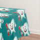 Tablecloth with an illustration of a cartoon style big white tooth smiling happily holding a red toothbrush and giving the thumbs up sign.