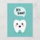 Dentist appointment reminder postcard featuring a kawaii style tooth character with a speech bubble saying "It's time" on a teal background. A fun design, perfect for reminding your customers to schedule their next appointment