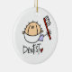 Lightweight, smooth, pure white ornament with nice sheen. Perfect size to be seen from across the room ... and to attract closer inspection! Price was great for ordering enough for the whole family! Clear, bold black design just as requested. Matches the order exactly. Just so nice!