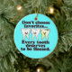 Lightweight, smooth, pure white ornament with nice sheen. Perfect size to be seen from across the room ... and to attract closer inspection! Price was great for ordering enough for the whole family! Clear, bold black design just as requested. Matches the order exactly. Just so nice!