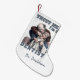 Perfect! Exactly what I ordered! I uploaded a picture of my blue chow, and the screen print was incredible. the back side of the stocking was the red and black checkered print. my puppy's name was also printed on the cuff of the stocking. PERFECT! Highly recommend this product! My puppy's name was screen printed onto the cuff of the stocking, the font was perfect!