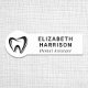 Modern professional white name tag for dentists, dental assistants, dental hygienists and other members of a dental office. Keep the tooth logo or replace with your logo. Add a name and position in simple typography.