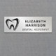 Modern professional silver faux metallic name tag for dentists, dental assistants, hygienists and other members of a dental office. Keep the tooth logo or replace with your logo. Add a name and title in simple typography.