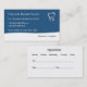 Dentist business card and appointment template online with image of a tooth symbol and appointment template displayed on the back of this double side business cards. Created for a Dentist, Dental office, or Dental assistant. Use in the waiting room where you can supply your patients with an appointment reminder.