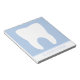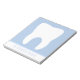 A personal blue and white themed proffesional notepad tailored to the dentist that works at the dentist's office.
