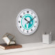 A professional dental wall clock with image of a tooth for a dentist office, dental practice, or dental supplies business.