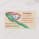 The illustration on this unique dental business card is a little water-color illustration. This smiling mouth with perfect teeth is an ideal image for a dental hygienist, a dentist and anyone who works with teeth and the mouth. The illustration has a green toothbrush in the mouth cleaning the teeth, the red lips are bright and smiling, it's a happy image and will be remembered by customers. On the back of this customizable business card there's space for you to write apointment times or any other information that's need by your clients. You can personalize this business card with your own details.