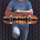 Cruise around downtown Denver Colorado with this classy Denver city skyline skate deck. Featuring photography of downtown Denver buildings silhouetting the colorful colorado sky and reflecting off the water in front.