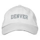 DENVER White cotton hat. Makes a wonderful gift for anybody who loves Colorado! If you would prefer to have your personal text then simply select "Personalize this template" details button to enter your choice of custom text. Embroidery is also customizable to other color choices by selecting the "Edit Design" tool button. Also available is the option to select choice of hat color on the main item page.