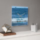 The colors of different shades of blues and greens both in the font colors and the picture, mixed with the white foamy water makes for a beautiful scene that also is so calming and inviting.