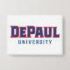 This dynamic design proudly showcases the official wordmark logo of DePaul University. The bold, impactful lettering of "DEPAUL" is rendered in a striking blue with a vibrant red outline, commanding attention. Below this, "UNIVERSITY" is clearly presented in a classic blue serif font, completing the institution's identity. This impactful and recognizable design embodies the spirit, pride, and academic excellence of DePaul University, serving as a clear identifier for students, alumni, and supporters.
