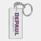 This dynamic design proudly showcases the official wordmark logo of DePaul University. The bold, impactful lettering of "DEPAUL" is rendered in a striking blue with a vibrant red outline, commanding attention. Below this, "UNIVERSITY" is clearly presented in a classic blue serif font, completing the institution's identity. This impactful and recognizable design embodies the spirit, pride, and academic excellence of DePaul University, serving as a clear identifier for students, alumni, and supporters.