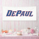 This dynamic design proudly showcases the official "DEPAUL" wordmark logo of DePaul University. The bold, slanted lettering is rendered in a striking dark blue with a vibrant red outline, creating a powerful and energetic visual. This impactful and recognizable design embodies the spirit, pride, and identity of DePaul University, serving as a clear identifier for students, alumni, and supporters.