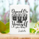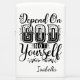 This lighter features a decorative black graphic that reads "Depend On GOD Not Yourself." The word "GOD" is uniquely designed with dotted outlines and small ruler-like markings.