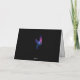 Depicts a lighted angel blowing a trumpet holiday card