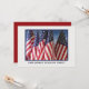 This photograph of American flags waving with sky as a background makes a festive and patriotic invitation to a military Deployment Send-Off Party. A dark blue border surrounds the photo, and an off white background completes the front. The reverse has off-white lettering on a a red background. Very unique! You can easily change the text for name, event title, date, location, etc. Original photograph by Marcia Socolik. All Rights Reserved © 2015 Alan & Marcia Socolik.