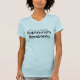 The material is a great quality that is hard to find with most tee shirts. Fabric was not see-through or thin at all, but was also very soft and comfortable. The shirt description states that it runs a little small, so I sized up one size for a perfect fit! I would definitely buy this type of tee shirt again because I love the fit and high quality fabric that I cannot find anywhere else. The printing was perfect and just as pictured. Loved the cute quote and really enjoy the tee in both the quality and design. I love quirky typography designs and funny quotes and I am extremely pleased with the overall quality and value I get at Zazzle!