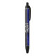 Very nice blue, or black ink pen. I will be buying more. The print was fine. I can easily see the print. The flowers look great.