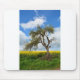 Ein alter morscher Baum vor dem blühenden Rapsfeld an einem schönen sonnigen Tag