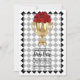 Derby day party invitations feature a gold trophy filled with red roses on a black and white check background with your names and date in chic lettering. MATCHING items in our collection.