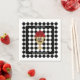 Derby cocktail party napkins feature a gold trophy filled with red roses on a black and white check background with your names and date in chic lettering.