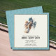 Elegant derby party invitations feature racehorses and jockeys on the way to the finish line with a aqua, ivory and gold border. MATCHING items in our collection as well as different colors on the back. *TIP: Square size requires extra postage - mail in a 5" x 7" envelope for regular rates.