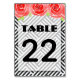 Table numbers featuring a red roses at the top on a background of black and white boxed stripes. *TIP: CHANGE THE TABLE NUMBER and then place in your shopping cart for EACH number you want to order. MATCHING items in our store.