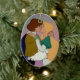 Oval shaped Christmas tree ornament featuring embracing animated characters, Princess Odette and Princess Derek, from The Swan Princess. The back of the ornament has The Swan Princess logo.
