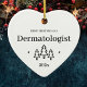 First Christmas as a dermatologist heart ornament. Elegant porcelain ceramic holiday ornaments in white with black lettering. Featuring Christmas trees and stars.
