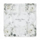 A soft and elegant pure white and greenery wedding pocket square featuring a watercolor painted scenery of white Desdemona Roses and silver eucalyptus greenery.