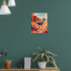 This vibrant painting captures a colorful desert bird standing in a glowing desert landscape at sunset. The warm orange and red tones of the rocky cliffs contrast beautifully with the cool blue and purple hues of the bird, creating a lively and dynamic composition. With its whimsical style and striking palette, this piece brings a touch of southwestern charm and nature's beauty into your home. Perfect for those who appreciate unique wildlife scenes and bold color contrasts.