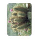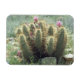 Soft pink flowers bloom from prickly branches of a cactus. The cactus thorns glow subtly from the back light. Color photography of cacti taken in the Sonoran desert in Scottsdale, Arizona. Personalize the decorative Southwestern desert photo magnets with your own text and images using the "Customize It" option to make special refrigerator magnet gifts.