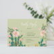 This cactus garden response card features a prickly pear cactus with pink blossoms. All the important wedding details can be edited. Colors include green, pink, white and black. The back has an artistic address that really makes a statement.