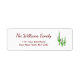 Decorated Cinco de Mayo return address label, with a green saguaro cactus and script typography design. With customizable red lettering, you can add your own text. A fun addition to your holiday cards and invitations.