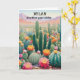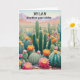 Celebrate with style using this witty cactus-themed birthday card:. The funny caption, which begins on the front and is completed inside the card, is "Another year older... still looking sharp!” With an illustration of flowering cacti in a desert landscape. and its playful prickly pun, this card makes recipients smile and feel celebrated in a fun, lighthearted way. Perfect for plant lovers, pun fans, and cactus enthusiasts, the card can be personalized with the recipient's name at the top.