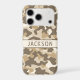 Customize this multi-hued brown desert camouflage iPhone 17 pro case with your name in a trendy modern CAP font in brown on cream. It's masculine and perfect for your favorite military, hunting, country or outdoorsman!