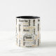 Thankful for the first cup of your favorite beverage each morning? Share those thanks in this mug designed with a desert black and beige typography multilingual "Thank You" word cloud in a variety of fonts over white.