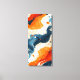 This is a captivating abstract fluid piece characterized by a powerful contrast between vivid, warm orange/amber tones and a rich, cool palette of deep indigo and cobalt blues. The composition features bold, sweeping, wave-like currents that flow dramatically across the canvas, separated by bands of creamy white and beige that enhance the movement.