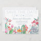 Desert theme wedding Save the Date card features a watercolor wildflower, cactus and succulent garden. Reverse side is a dusty blue watercolor print. Perfect for southwestern, California, summer, boho and rustic themes. Original artwork KL Stock.