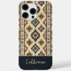 Protect your iPhone in style with this Southwestern-inspired case. The chic distressed pattern featuring dark blue, burnt orange, and yellow details on a beige background provides a unique aesthetic. The white handwritten script on a blue banner adds a personalized touch. This case is both stylish and durable, ensuring your device stands out.