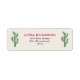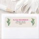 These elegant and trendy wedding or bridal shower address labels feature a cactus illustration, with black and dark pink typography on a neutral background, for a glamorous desert look.