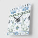 Two watchful hares sit poised against a backdrop of a Southwestern pattern, their alert eyes and upright ears echoing the spirit of the land. With desert tones of ochre, blue, and black