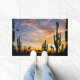 Desert Landscape Southwest Kokopelli Rug Doormat. Animals in the sunset desert. Vivid color combination that you can customize background colors to match your decor. Kokopelli - All images are resizable for even more customization. Native American Indian cultures. Attributed to ancient aliens or tribal art and inspired by cave and rock drawings. Customize your Southwestern Style Native American door mat rug colors and styles. Great gift idea for those that love nature in the southwest.
