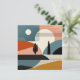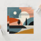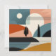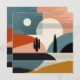 An abstract landscape of a desert scene with lines and shapes in shades of brown, orange, turquoise, beige, tan, and black.