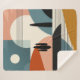 An abstract landscape of a desert scene with lines and shapes in shades of brown, orange, turquoise, beige, tan, and black.