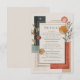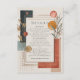 Capture the chic, artistic spirit of a desert sunset with this stunningly modern and abstract details card. This design is a masterpiece of contemporary composition, blending clean geometric shapes with soft, organic botanicals in a sophisticated, earthy color palette of terracotta, burnt orange, and deep charcoal blue. These bold shapes are balanced by delicate sprigs of sage green eucalyptus and minimalist dried foliage, accented with shimmering gold foil dots and elegant, clean lines, all set against a warm, textured cream background. This card is the perfect way to elegantly present all the extra information your guests will need, such as accommodation, directions, or your wedding website. Its versatile and stylish design also makes it a wonderful choice not just for a wedding details card, but also as an RSVP card, a rehearsal dinner invitation, or an information card for a corporate event or milestone birthday. Set a tone of modern artistry and chic, bohemian style for your entire celebration.