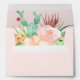 This stylish wedding envelope features trendy watercolor succulents and cactus flowers in shades of green, pink, and white with a soft earthy pink background.