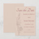 Part of the Desert Rose – Dune & Bloom wedding stationery collection, this romantic save-the-date card features delicate vintage-style rose engravings paired with soft dusty-rose typography on a warm linen-textured background.