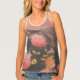 Women's All-Over Print Racerback Tank Top, White Piping, S